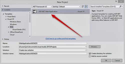 Now the new Create Web Project dialog includes the feature to change the default Authentication options. when you create an ASP.NET Web Forms project you can select any of the following options:
