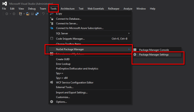 - Go to Tools>Nuget Package Manager>Package Manager Settings. This will open the option window for the visual studio.